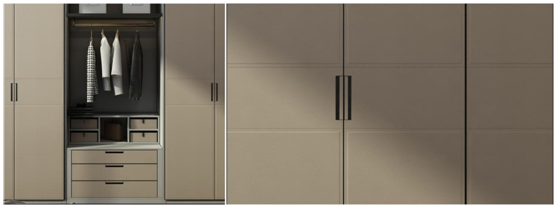 皮質(zhì)的東西總能給人營(yíng)造一種溫馨的親切感,這樣的皮質(zhì)衣柜門不僅有柔軟的手感,讓人不禁遐想到了浪漫中世紀(jì)的法國(guó)風(fēng)情,高貴感油然而生。